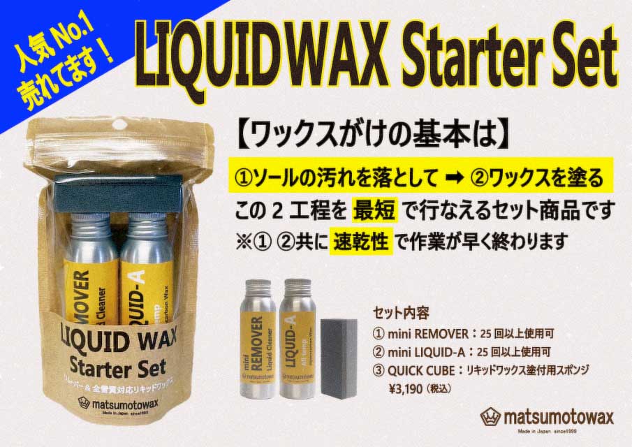 ※最初にリムーバーでソールを綺麗に拭いてから(キッチンペーパーを使用)、リキッドワックスをご使用ください。ワックスの効果が十分に発揮されます。