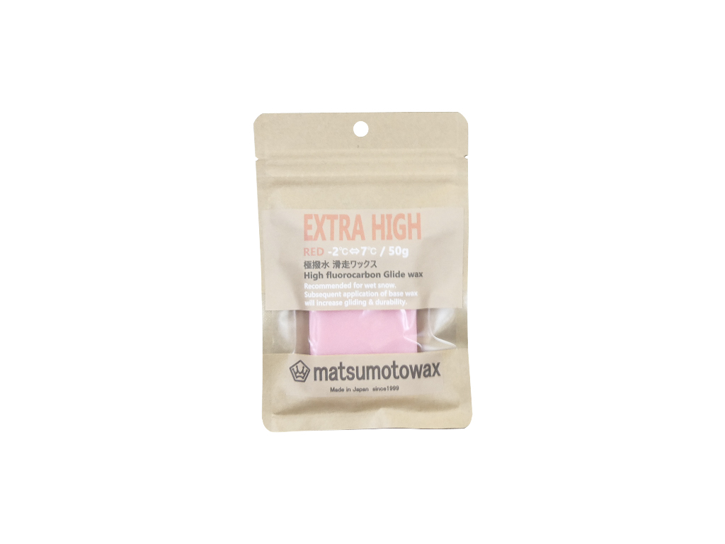 MATSUMOTOWAX EXTRA HIGH RED ¥3,850 (税込) フッ素高配合の滑走ワックス レース用・ワンランク上のフリーライディング用 特に湿度の多いコンディションで活躍します ホットワックスまたは生塗りでも使用可 適温帯(気温):-2℃~7℃ 50g チューンナップ用品 商品型番 EXTRA HIGH RED 原産国 日本 ウェイト(重量) 50g エリア別ワックス選択表 気温、雪質に応じた選択方法 PRODUCT watanabe 前のPRODUCT 次のPRODUCT